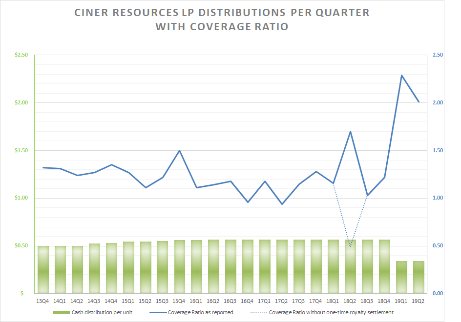 The estimate in the IPO prospectus (see page 62 below) for the quarter ending July 2016, includes a full quarter at the 340 MMCF/D MVC rate shows $13.7 million in revenue from the MVC, 3.5 million in revenue for volume in excess of the MVC, and 5.5 million in pipeline usage fees for a total of 22.6 million.  Against this, deduct 10 million in expenses, add back 3.7 million for EBITDA adjustments, subtract 1.9 for interest and maintenance capital and you get 16.6 million or coverage of 16.6/11 = 1.5x