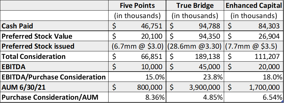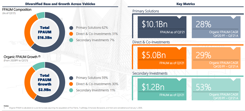 Second, there are opportunities for cross selling and leveraging networks of investors and investments across the company’s platform especially geographic expansion. At the Annual meeting in July 2021, Alpert/Webb gave the example of introducing the TrueBridge fund to European investors in its network where TrueBridge was previously unknown and raised 700mm in new commitments.